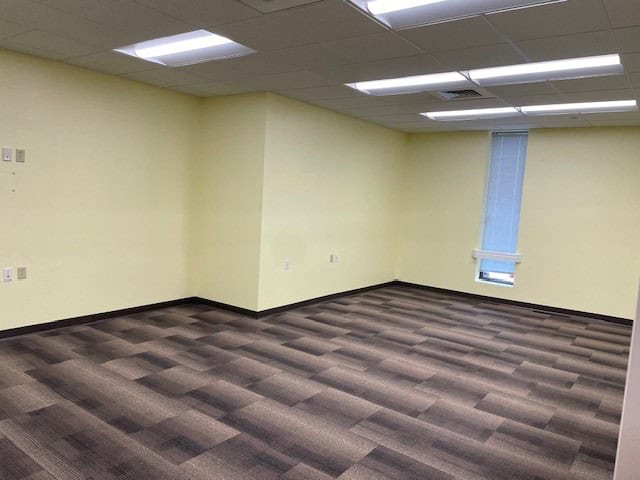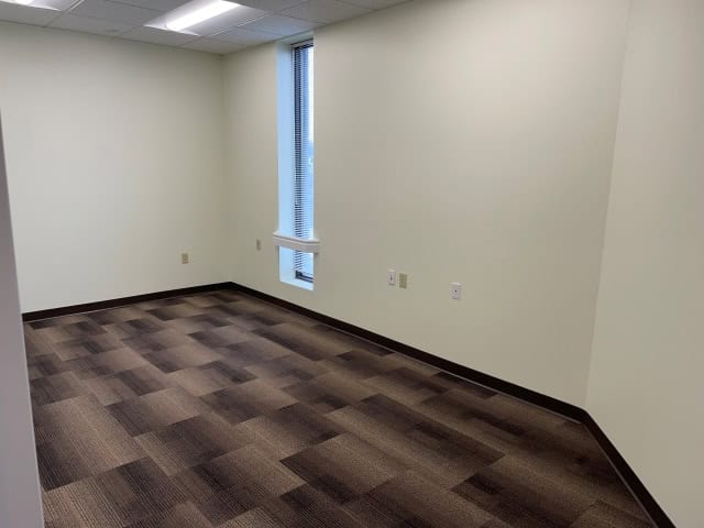 - 1,100 (+/-) SF of self-contained office space with open reception/clerical area, private office, lav and storage